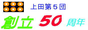 <上田第5団創立50周年記念事業> ・姉妹都市 鎌倉市への団合同旅行(8月) ・50周年記念誌の発行(10月) ・50周年記念式典の挙行(11月) ・団のホームページの開設(7月) ・教育関係者へのボーイスカウト運動の理解促進運動 |