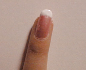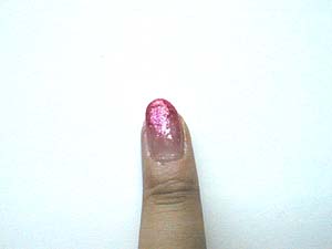 まず、爪の上のほうにピンクをぬってトップコートをピンクの上から