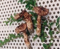 初夏から晩夏にかけて、いずれも地上に出ます。アカジコウ、アミタケ、オウギタケ、クギタケ、ショウゲンジ(コムソウタケ)、チチアワタケ、ヌメリイグチ(リコボウ)、マツオウジ、マツタケなどです。