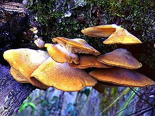 いずれもブナの枯れ木、倒木に生える。茎の基部を割ってみて、暗褐色のシミがある場合はツキヨタケ。ただし幼菌にはシミがない。暗がりで発光したらツキヨタケ。食すと下痢、腹痛、嘔吐。